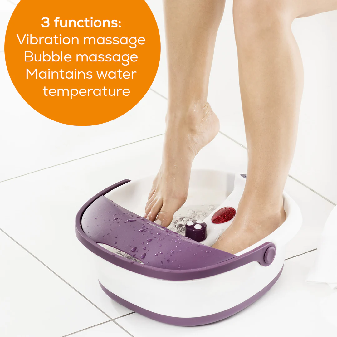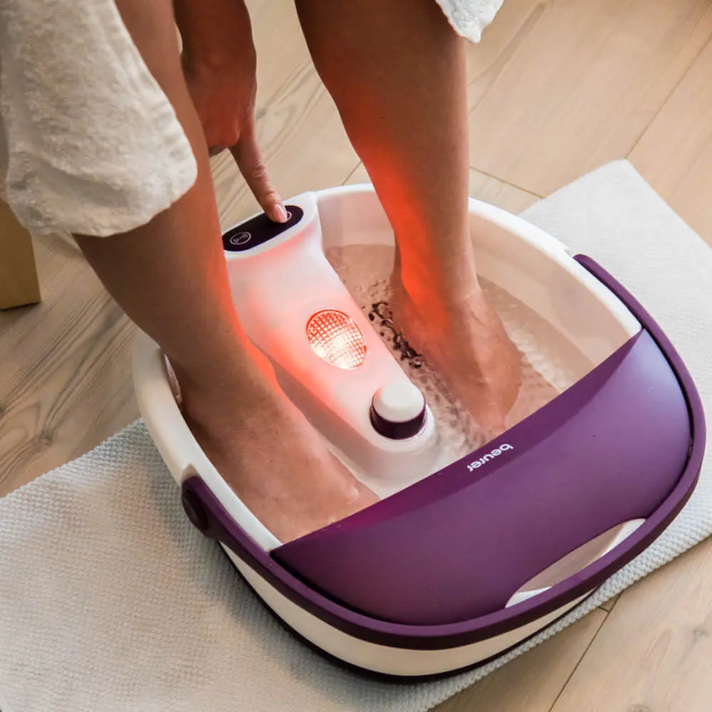 A teljes lábápolás és relaxáció élményét kínálja otthon. A három funkció – vibrációs, pezsgőmasszázs és víztemperálás – mellett infravörös hőhatás és cserélhető pedikűr feltétek gondoskodnak a felfrissülésről. A praktikus fül, a csúszásmentes gumitalpak és a kiöntőnyílás kényelmessé és biztonságossá teszik a használatot.