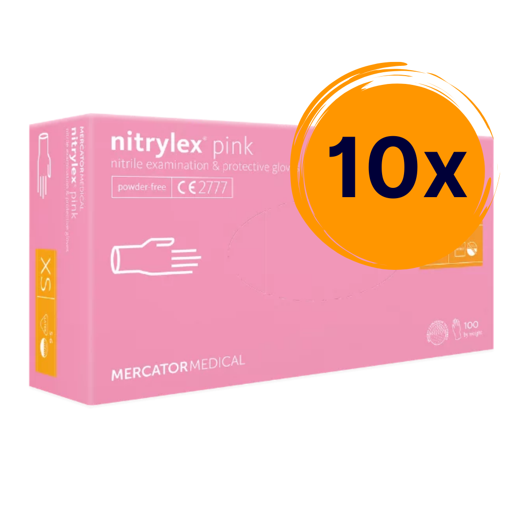 A Nitrylex rózsaszín nitril kesztyű kiváló minőségű, púdermentes, orvosi kesztyű, amely világos rózsaszín színben érhető el. A latexmentes kialakításának és nitril anyagának köszönhetően a Nitrylex rózsaszín kesztyű allergiás reakciókat nem vált ki, így érzékeny bőrűek számára is tökéletes választás. Könnyedén használható hosszabb munkavégzés során is, anélkül, hogy a kéz kényelmét befolyásolná.