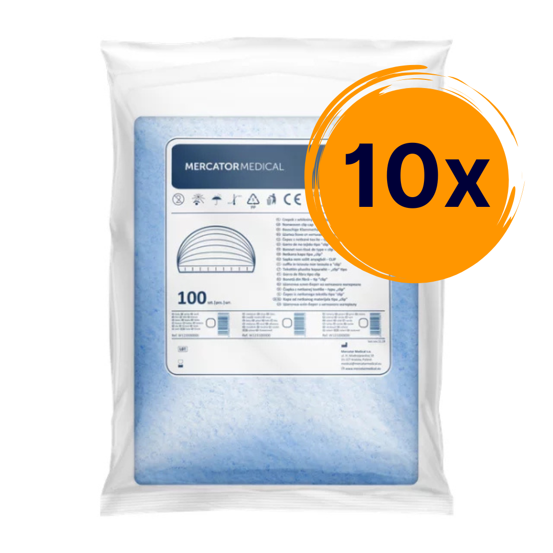 10 csomag Nővérsapka „clip” típusú nem szőtt textil anyagból (kék) (10×100 db)