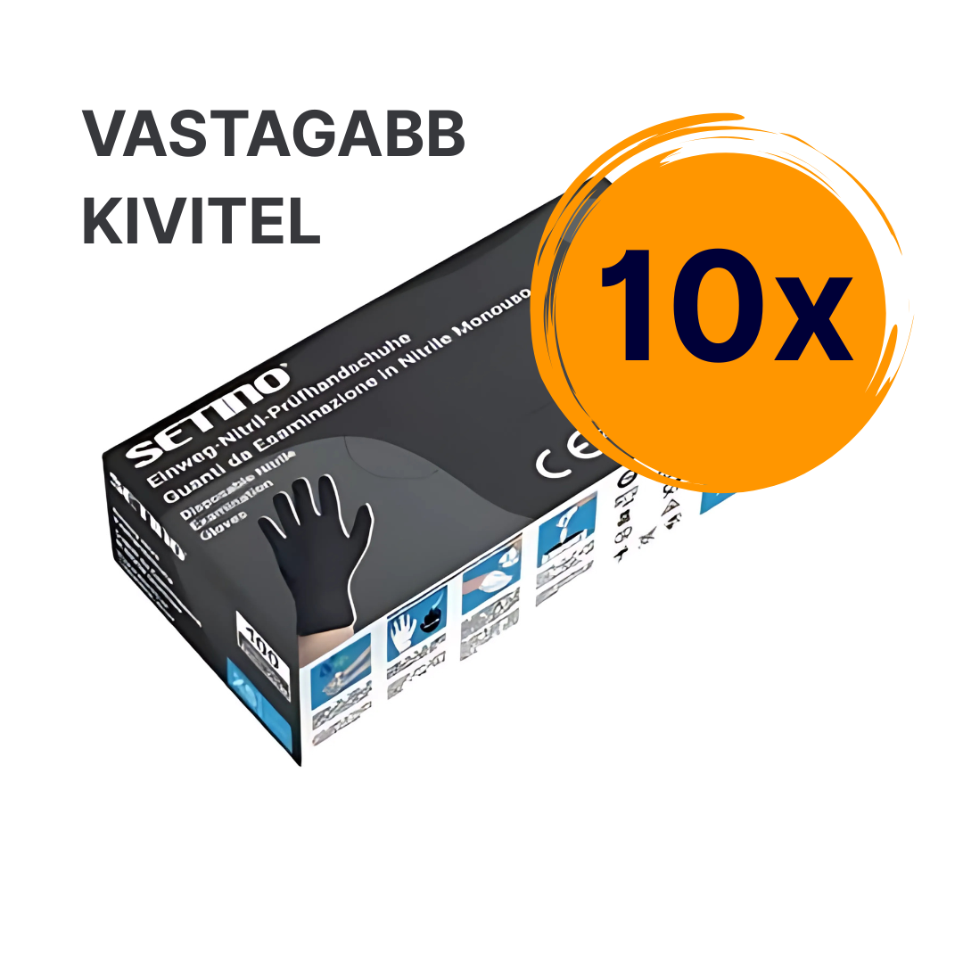 10x SETINO Nitril vizsgálókesztyű (fekete) 5,5g vastagabb kialakítás
