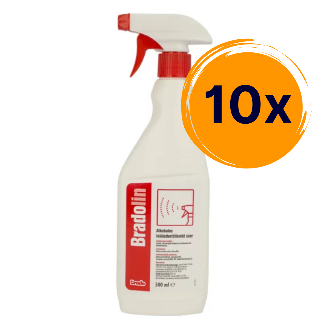 10 flakon Bradolin alkoholos felületfertőtlenítő szórófejes kivitelben (500 ml)