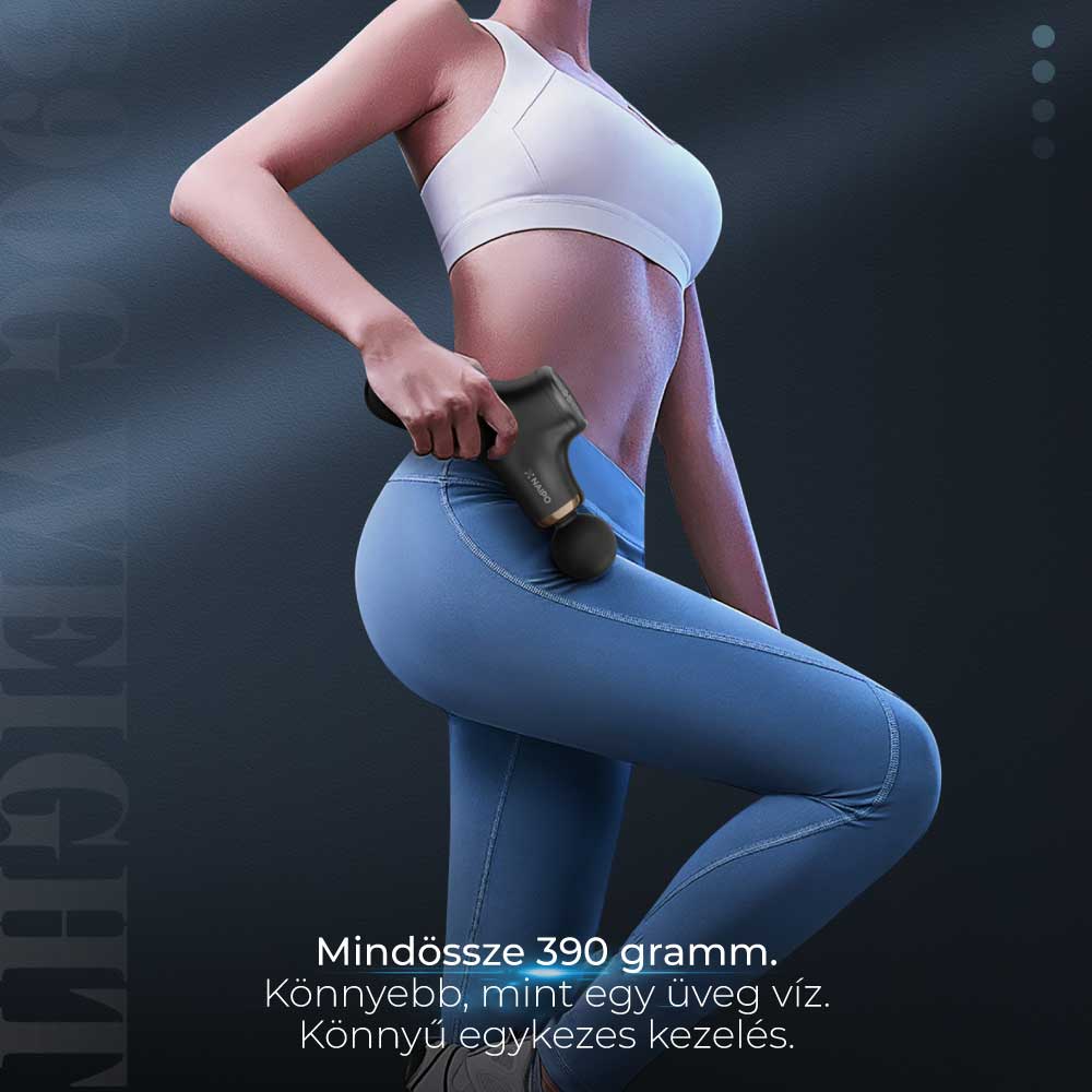 A Naipo NP MG01 kézi masszírozó pisztolya mindössze 0,388 kg súllyal rendelkezik és méretben egy mobiltelefonhoz hasonlítható. Csuklópánttal rögzítve zsebbe vagy kézitáskába helyezheti, avagy használhatja otthon, az irodában, a szabadban, de akár úton is. Segít enyhíteni a feszes izmokat, izomlázat és akut fájdalmat bárhol és bármikor.