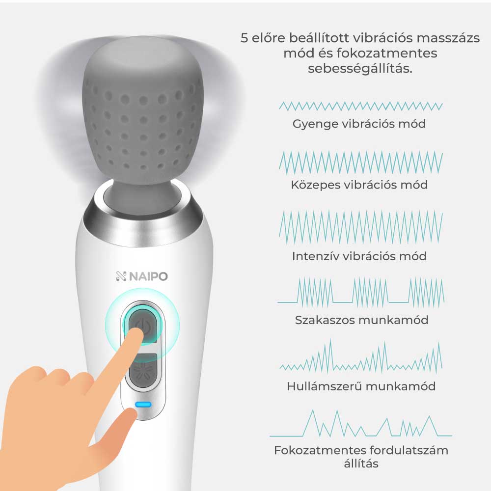 A Naipo MGPC-806P kézi masszírozó erős, 8000 ford./perc sebességű motorral és 5 masszázsmóddal segít az izmok ellazításában. Ergonomikus kialakítása és bőrbarát anyaga kényelmes használatot biztosít. Hordozható kialakítás, bárhová magaddal viheted. Ideális választás a mindennapi stressz oldására és izomfájdalmak csökkentésére.