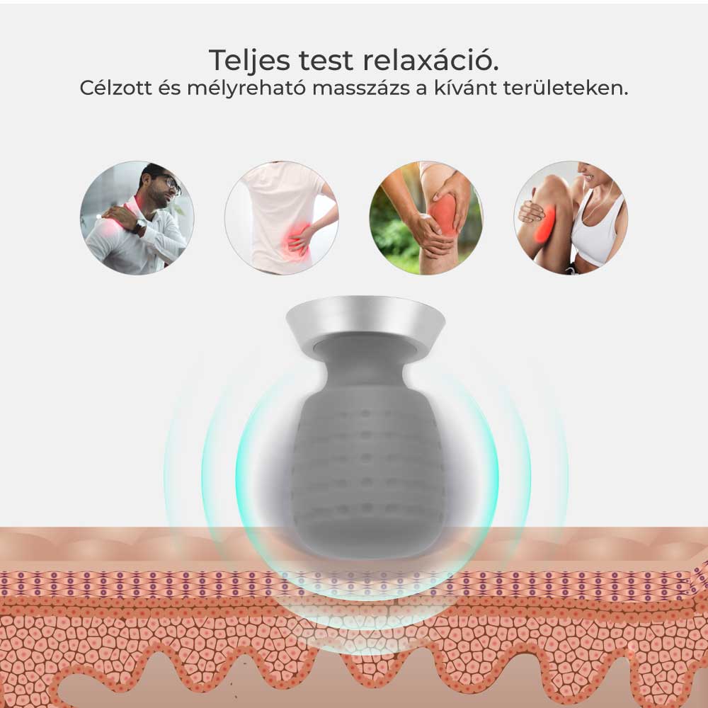 Erős motorral (8000 ford./perc) hajtva, amely egy átható vibráló mélyszöveti masszást biztosít használójának, ezzel segít ellazítani az izomlázat okozta görcsöket a fáradtságot és a test bármely pontján fellépő fájdalmat. Tökéletes masszázs a nyaknak, a hátnak, a vállnak, a deréknak, a lábfejnek, valamint az ízületi pontok érintésével ideális a teljes test ellazításához.