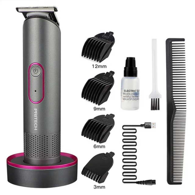 PRITECH akkumulátoros hajvágó szett 4 fésűvel és töltőállvánnyal